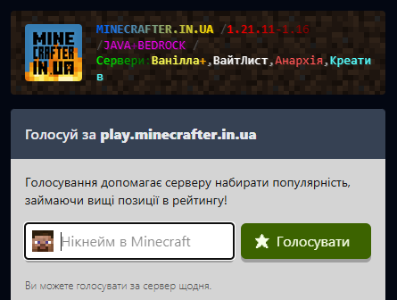 ⭐ Підтримай наш Minecraft сервер — проголосуй!